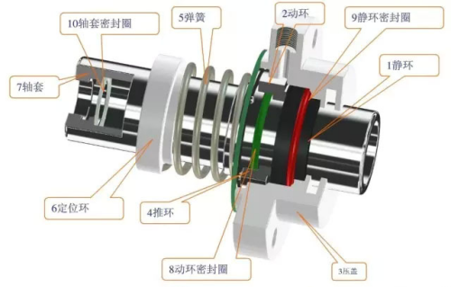 主要有以下四类部件。a.主要密封件:动环和静环。b.辅助密封件:密封圈。c.压紧件:弹簧、推环。d.传动件:弹箕座及键或固定螺钉。
